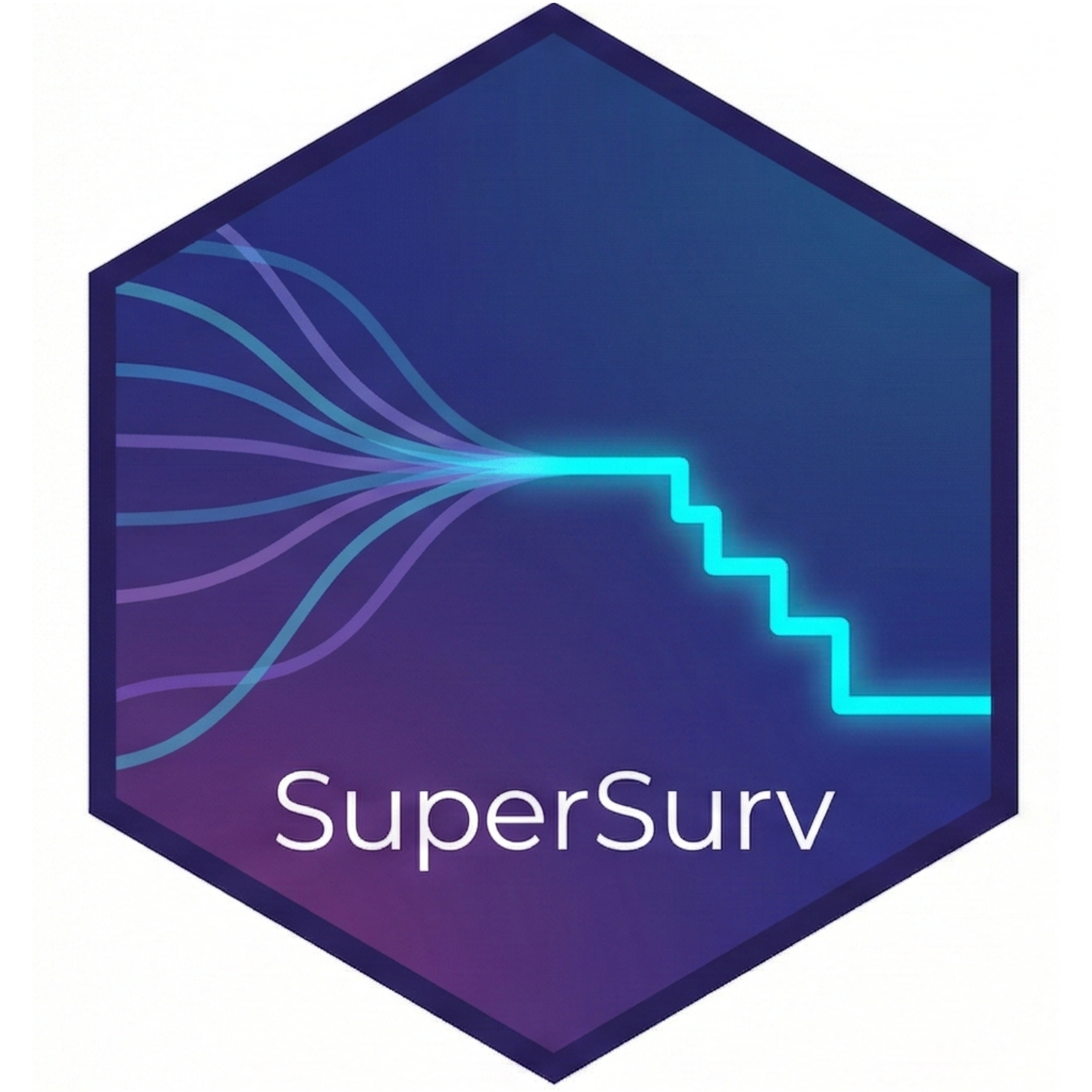 Visit our official website for a complete suite of in-depth tutorials: * 0. Installation & Setup: Get your R environment ready. * 1. The SuperSurv Ensemble: Build and train your first meta-learner. * 2. Model Performance: Evaluate Time-Dependent Brier Scores and Uno’s C-index. * 3. Selection vs. Ensemble: Compare evaluation approaches. * 4. Screening Methods: Handle high-dimensional genomic data. * 5. Hyperparameter Tuning: Automate algorithmic grid searches. * 6. Random Forests: A deep dive into machine learning wrappers. * 7. Parametric Models: Classical statistical approaches. * 8. SHAP Interpretability: Demystify black-box models with global and local XAI. * 9. Causal Inference (RMST): Evaluate treatment effects over time. * 10. Parallel Processing: Scale up your computations for massive datasets.